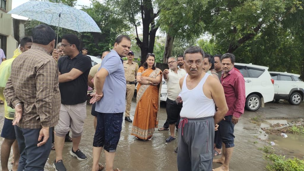 जालना, २२ सप्टेंबर – जालना शहरात झालेल्या मुसळधार पावसामुळे अनेक भागांमध्ये पूरसदृश परिस्थिती निर्माण झाली आहे. या नैसर्गिक आपत्तीमुळे झालेल्या नुकसानीचा आढावा घेण्यासाठी जिल्हाधिकारी श्रीमती आशिमा मित्तल यांनी आज बाधित भागांना प्रत्यक्ष भेट देऊन पाहणी केली.