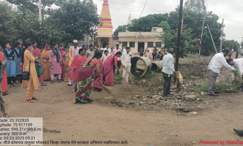 कोसगाव (भोकरदन), दि. 23 सप्टेंबर: भोकरदन तालुक्यातील कोसगाव ग्रामपंचायतीने ‘मुख्यमंत्री सेवा पंधरवडा’ अभियानांतर्गत गावात ‘स्वच्छता झाडू-फावडा-टोपली’ मोहीम यशस्वीपणे राबवली. या अभियानात स्वच्छता आणि वृक्षारोपणाला विशेष प्राधान्य देण्यात आले.
