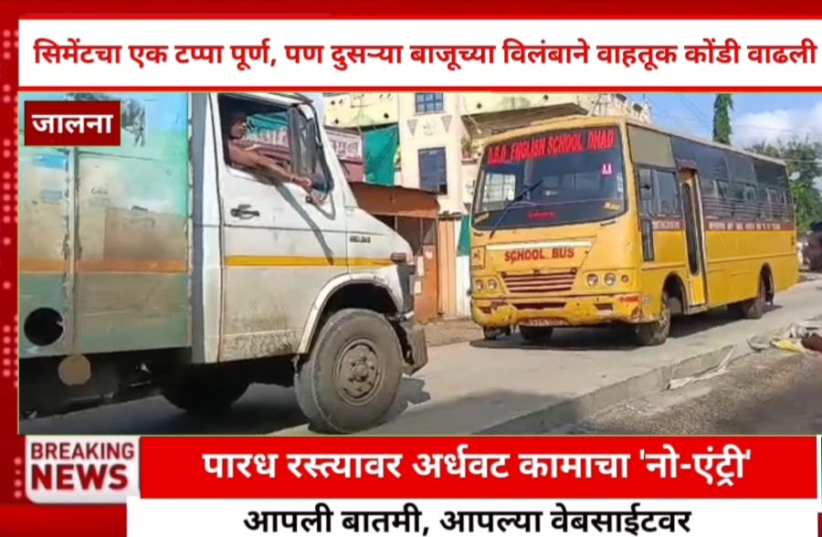 рдЬрд╛рд▓рдирд╛/рдкрд╛рд░рдз: (рдкреНрд░рддрд┐рдирд┐рдзреА) рдкрд╛рд░рдз-рдзрд╛рдордгрдЧрд╛рд╡ рд░рд╕реНрддреНрдпрд╛рдЪреНрдпрд╛ рдЧрд╛рд╡ рд╣рджреНрджреАрддреАрд▓ реирежреж рдореАрдЯрд░ рд╕рд┐рдореЗрдВрдЯ рдХрд╛рдБрдХреНрд░рд┐рдЯреАрдХрд░рдг рдХрд╛рдорд╛рддреАрд▓ рд╡рд┐рд▓рдВрдмрд╛рдЪрд╛ рдереЗрдЯ рдлрдЯрдХрд╛ рдХреЗрд╡рд│ рд╕реНрдерд╛рдирд┐рдХрд╛рдВрдирд╛ рдирд╛рд╣реА, рддрд░ рд░рд╕реНрддреНрдпрд╛рд╡рд░реВрди рджрд░рд░реЛрдЬ рдкреНрд░рд╡рд╛рд╕ рдХрд░рдгрд╛рд▒реНрдпрд╛ рд╡рд╛рд╣рдирдзрд╛рд░рдХрд╛рдВрдирд╛ рдмрд╕рдд рдЖрд╣реЗ. рд░рд╕реНрддреНрдпрд╛рдЪрд╛ рдПрдХ рднрд╛рдЧ рдкреВрд░реНрдг рд╣реЛрдКрдирд╣реА, рджреБрд╕рд▒реНрдпрд╛ рдмрд╛рдЬреВрдЪреЗ рдХрд╛рдо рдЧреЗрд▓реНрдпрд╛ рдЪрд╛рд░-рдкрд╛рдЪ рджрд┐рд╡рд╕рд╛рдВрдкрд╛рд╕реВрди рдерд╛рдВрдмрд▓реНрдпрд╛рдиреЗ рд╡рд╛рд╣рдирдзрд╛рд░рдХрд╛рдВрдирд╛ рд░реЛрдЬ рдЬреАрд╡рд╛рд╡рд░ рдЙрджрд╛рд░ рд╣реЛрдКрди рдкреНрд░рд╡рд╛рд╕ рдХрд░рд╛рд╡рд╛ рд▓рд╛рдЧрдд рдЖрд╣реЗ.